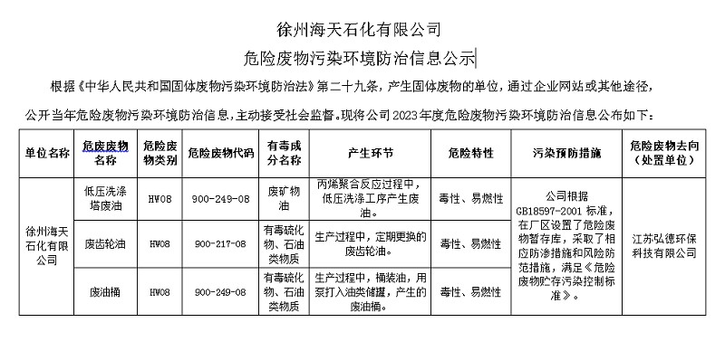 徐州腾博官网诚信为本专业服务石化有限公司 危险废物污染环境防治信息公示