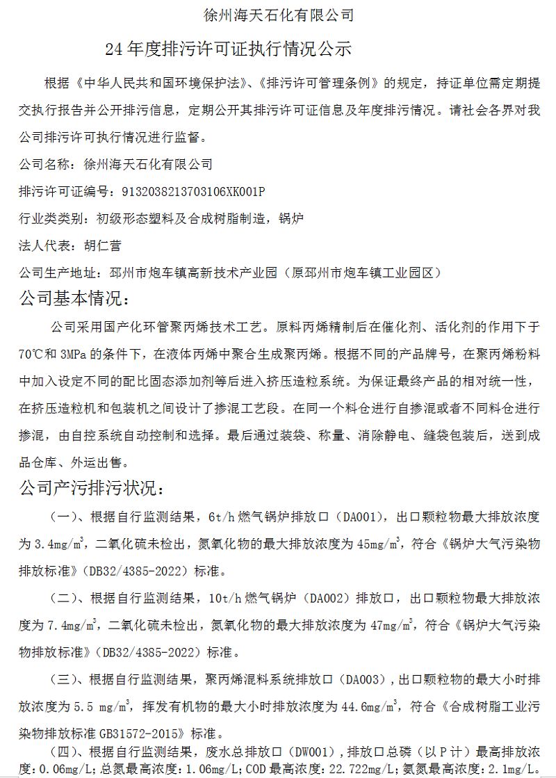 徐州腾博官网诚信为本专业服务石化有限公司 2024年度排污许可证执行情况公示