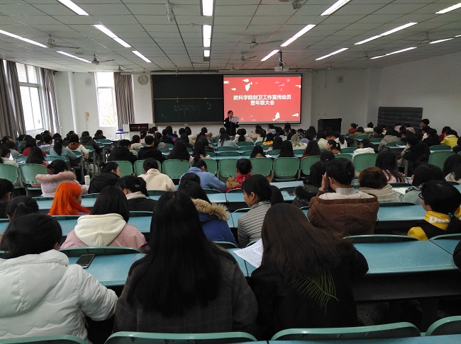 本网讯(文、图/罗祺平)教育科学学院为积极响应学校“创卫”工作要求,认真贯彻落实《乐山师范学院创建国家级卫生城市工作方案(三年工作规划)》方案,3月13日—18日通过开展全院年级大会、各班班会等宣讲活动,对学生进行劳动教育。要求每一位学生积极行动,人人参与,营造一个文明守信的生态环境;倡导在创卫中提升自我健康卫生水平;在劳动锻炼中提升自我责任心与意志力,争取德智体美劳全面发展。