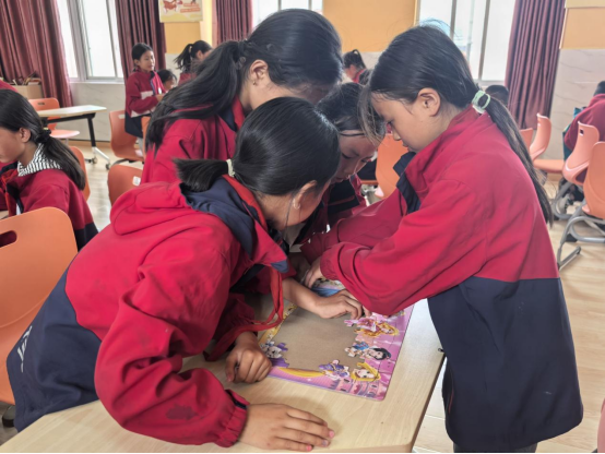 “金翼筑梦·彝乡启智”主题活动中,团队成员曾顺芳组织了拼图、手工、绘画等活动。学生们分小组展开激烈而有趣的拼图竞赛,在这个过程中,他们的团队合作能力和沟通能力得到了充分锻炼,每个小组都积极协作,认真完成拼图任务,展现出极高的参与热情和团队精神。同时,实践团队还精心组织了以“我爱我的家乡”为主题的画画、做黏土、歌唱等一系列实践活动。学生们在丰富多彩的活动中,尽情发挥自己的想象力和创造力,用画笔描绘家乡美景,用黏土塑造心中所爱,用歌声和朗诵表达对家乡的热爱,在快乐中学习,学习中成长,极大地丰富了他们的学习生活。活动结束之际,实践团队为每一位表现优秀的学生颁发了精美的奖品,包括直尺、小玩具、荧光笔、笔记本等。这些奖品不仅是对学生们努力和进步的肯定,更是对他们未来学习生活的美好祝愿。