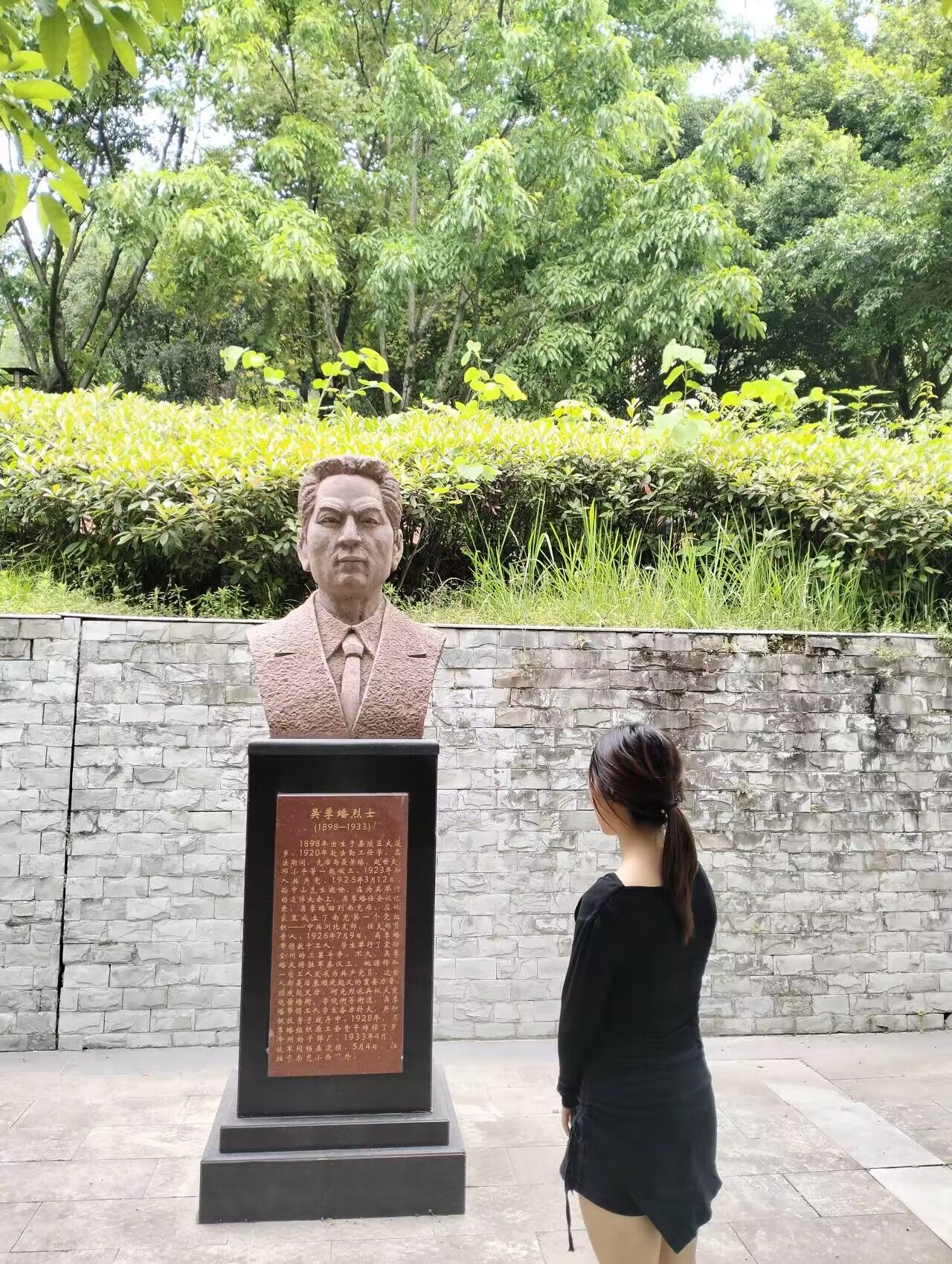队员们踏入阆中烈士园,首先映入眼帘的是气势恢宏的《强渡嘉陵江》《告别苏区》《西路女红军》三大主题雕塑,它们栩栩如生地展现了当年红军战士们英勇战斗、无畏前行的伟大形象,瞬间将队员们带回到那个战火纷飞的年代。其中一位实践队员眼眶泛红地说:“看到这些烈士的事迹,才明白如今的和平生活是多么来之不易,我们一定要好好珍惜。”