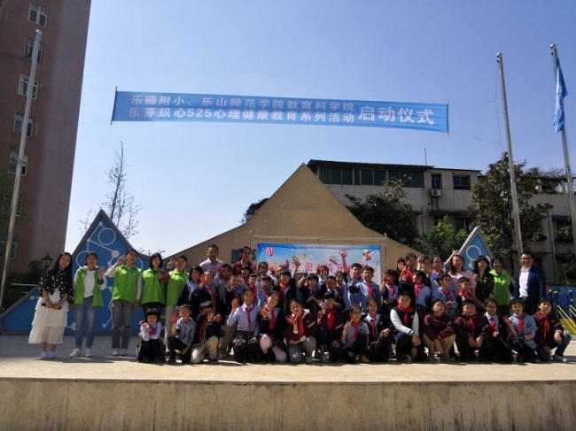 2019年4月9日上午10:30,教科学院党总支书记杨霞、副院长王立新带领乐芽志愿者,在乐师附小的操场举办了“乐芽织心5?25心理健康教育系列活动”启动仪式。