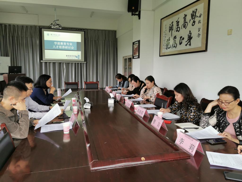 本网讯(文/余祥、图/唐红樱)10月11日下午,学院在学院会议室召开了学前教育专业人才培养研讨会。会议由教育科学学院主持工作副院长谢艺泉主持,邀请了乐山市实验幼儿园、机关幼儿园、金太阳幼儿园等近十所幼儿园的园长出席,同时学前教育系全体专任教师也参加了此次会议。