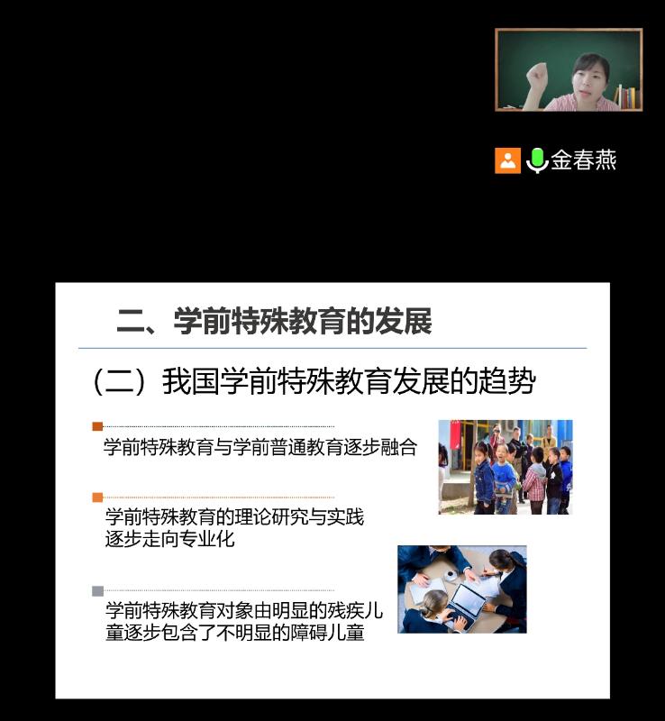 本网讯(文、图/金春燕)《学前特殊儿童教育》课程教学是理论和应用性比较强的学科。理论方面,学生应掌握生物学、生态学、心理学及教育学等在学前特殊儿童教育中的重要作用及应用原理。在应用方面,要求学生今后参加工作后能鉴别特殊婴幼儿,并对其进行一定的干预训练和教育指导。随着经济文化及教育的发展,学前特殊儿童的范围也从显性的生理障碍逐渐扩大到隐性的精神、心理等方面有特殊需求的婴幼儿。融合教势在必行,因此需要通过体验、讨论、合作学习、案例分析等各种方法了解学前特殊儿童的特点,学会观察、鉴别特殊儿童并给出教育方案。