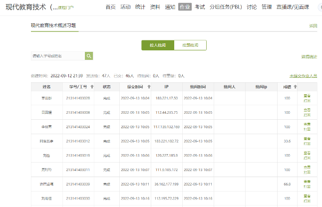 同时结合课程实际,通过QQ群直播、群课堂和腾讯课堂等三种方式进行授课,让学生感受不同直播平台的教学体验,这对学生日后自己开展线上授课提供了选择参考。在第一、二周现代教育技术理论讲授的基础上,结合在线课程平台和课程内容,跟学生补充讲解了专题“慕课、翻转课堂和微课”,让学生了解现代教育特别是线上教学的特点、优点,翻转课堂的优势及实施以及普及微课制作的相关知识。此外,依托在线课程平台,除了实现签到和在线观看教学微课视频外,还组织了线上测试和线上互动,并让学生先行预习课程特别是操作类的内容,以便后续到校后能尽快上手。