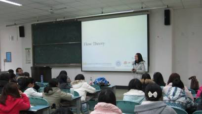 2012年2月22日下午,教育科学学院心理学教研室邀请美国密歇根大学副教授郭嶷博士给心理教研室教师和09、10级心理专业同学举办关于Flow Theory的学术讲座。郭嶷博士毕业于美国德克萨斯A&M大学,获信息系统博士学位,现任教于美国密歇根大学。她的主要研究方向为利用认知心理学的相关理论来探讨商业教育及信息系统的人-机互动方向。