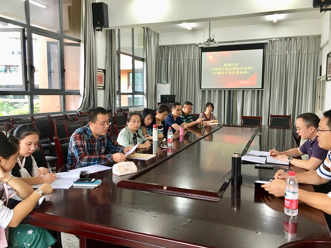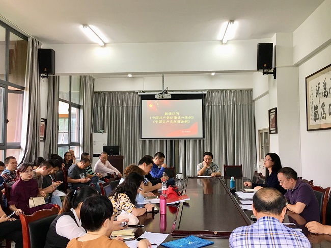 9月20日下午,为了进一步增强党员、干部的纪律性和规矩意识,教科学院教师党支部组织全体教职工党员学习《中国共产党纪律处分条例》及《中国共产党问责条例》(以下均简称条例)。