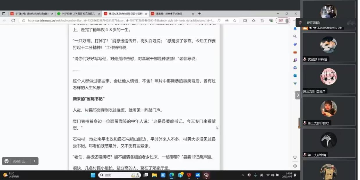活动伊始,第一学生党支部全体党员们一起阅读了清廉党员干部的相关文章,深入学习其身上所展现的价值追求和清风正气。