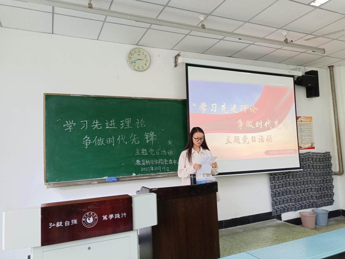 本网讯(文/邓庆琳、图/韩丹阳)10月15日下午,教育科学学院组织所有学生党员开展了“学习先进理论,争做行动先锋”主题党日活动,活动由邓庆琳主持。