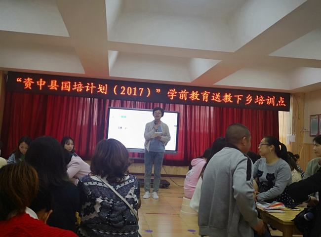 2019年4月16日~17日,根据资中县教体局国培工作安排与乐山师范学院教科院相关要求,由资中县教研室组织,资中县重龙镇第二幼儿园承办的“资中县国培计划(2017)学前教育送教下乡第六次培训活动”如期开展。我校学前教育专业刘涛老师、资中县教研室肖莉老师、培训团队成员以及来自全县各幼儿园的80余名幼儿教师参加了此次活动。培训中融汇了集体教学活动研讨、幼儿园特色早操展示、幼教理念传递、培训成果交流等内容。