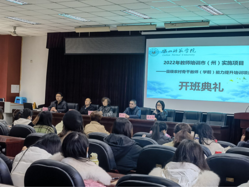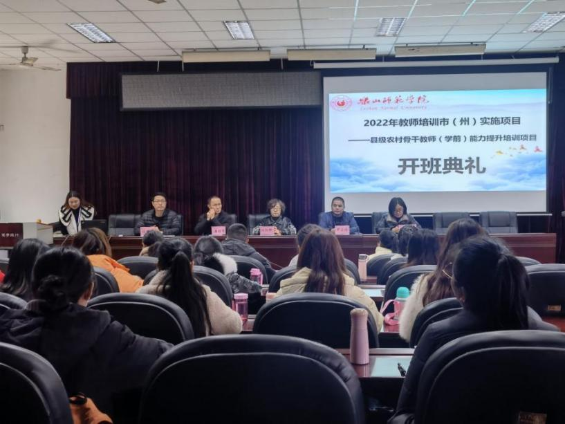 本网讯(文、图/苗芳芳)12月5日上午,2022年“国培计划”——县级农村骨干教师(学前)能力提升培训开班典礼在乐山师范学院弘毅楼412教室举行。乐山腾博官网诚信为本专业服务院长、国培首席专家汪红烨、党委书记罗立顺、副院长徐世鼎、唐前军、教育科学学院“国培计划”执行专家教学班主任苗芳芳、金春燕、行政班主任赵增华以及来自四川乡镇公办幼儿园的49名教师参加了此次开班,开班典礼由徐世鼎主持。