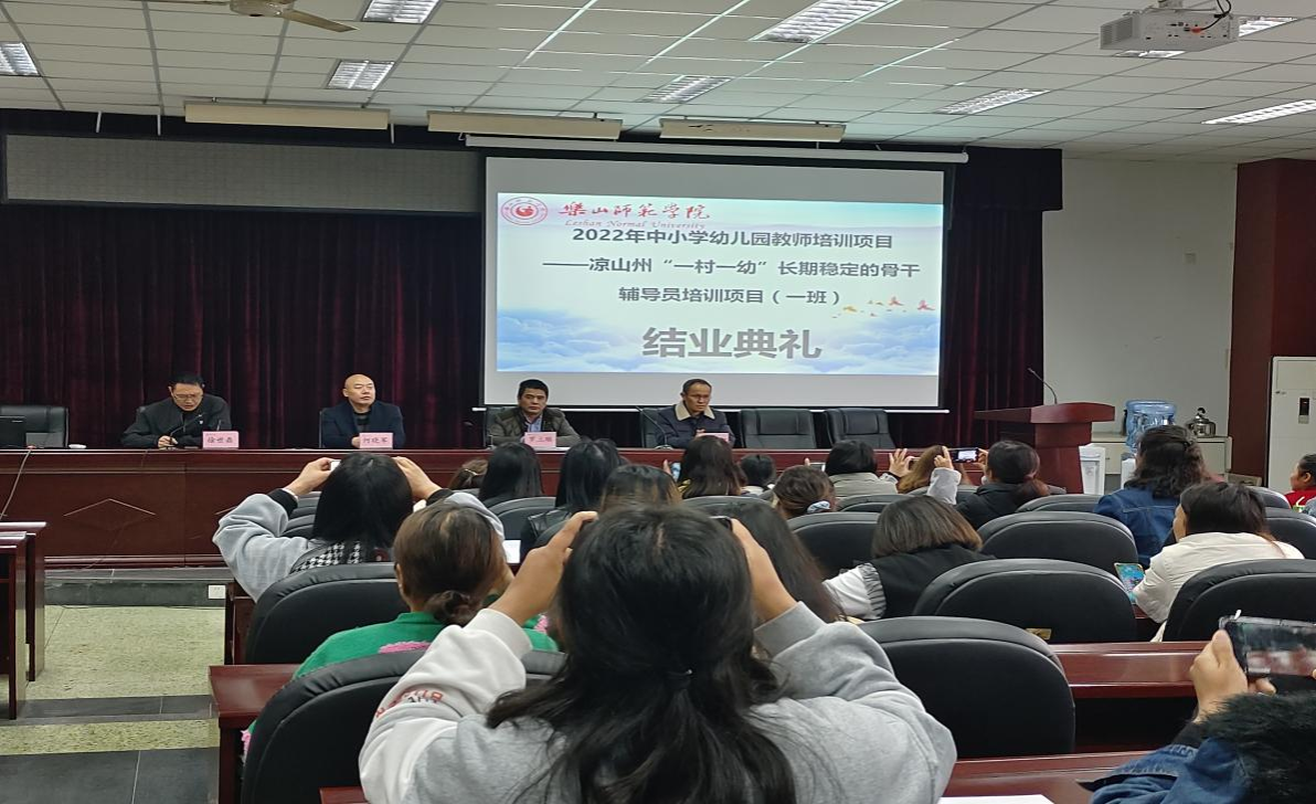 本网讯(文、图/罗佳)3月28日上午,由乐山腾博官网诚信为本专业服务承办的“四川省2022年中小学幼儿园教师培训市(州)实施项目——凉山州“一村一幼”长期稳定的骨干辅导员培训项目(1班)圆满结束并顺利举行结业典礼。乐山腾博官网诚信为本专业服务党委书记罗立顺、党委副书记兼纪委书记何晓军、副院长唐前军出席结业典礼。结业典礼由副院长徐世鼎主持。