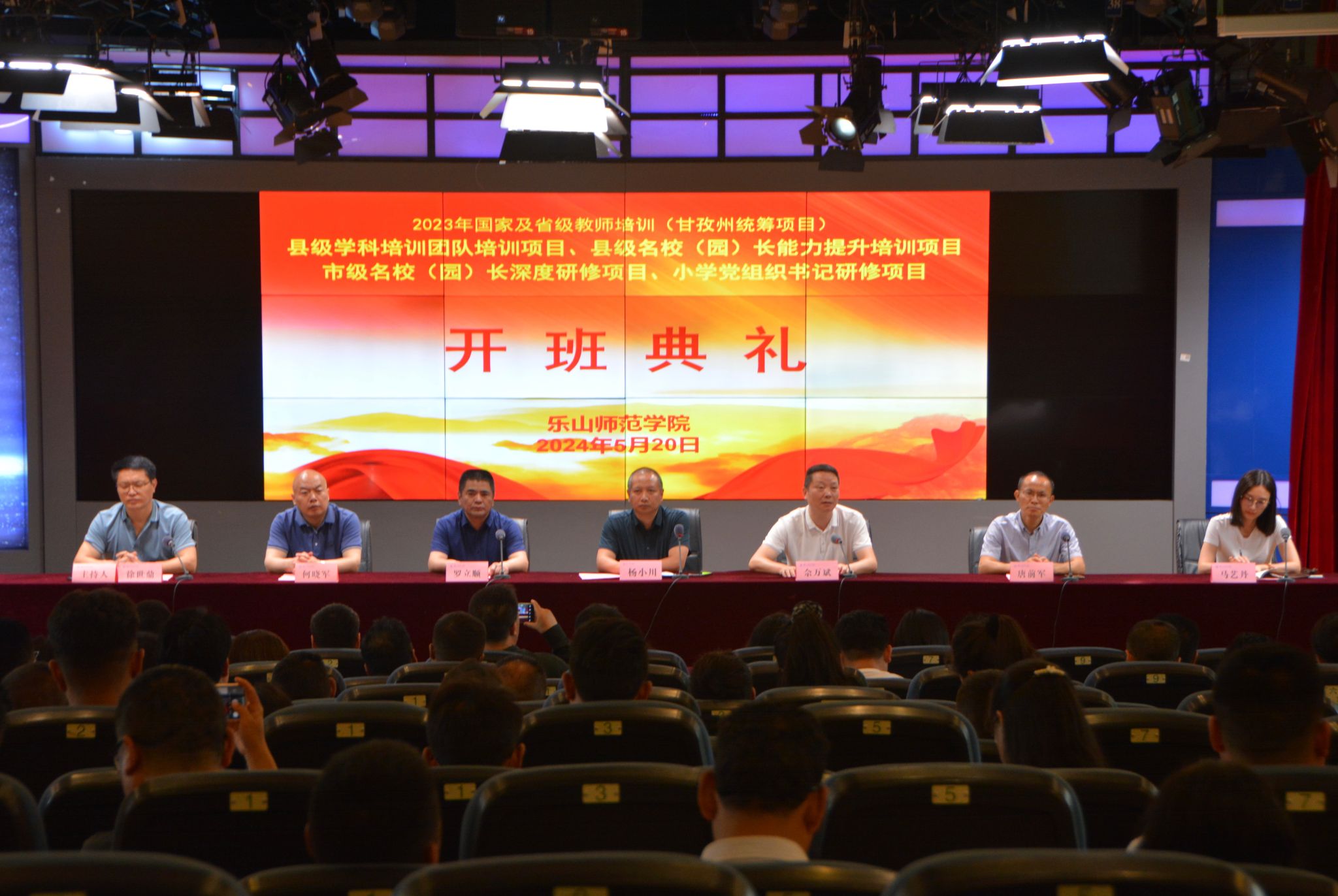 本网讯(文、巴玉宁/图、张媛)5月20日上午,由乐山腾博官网诚信为本专业服务承办的2023年度国家及省级教师培训(甘孜州统筹项目)四个培训班在乐山师范学院旷怡楼学术报告厅顺利开班。学校党委常委、组织部部长、教育科学学院院长佘万斌,继续教育学院院长杨小川,教育科学学院党委书记罗立顺等教育科学学院领导班子成员出席,四个培训班教学、行政班主任,志愿者以及来自甘孜州近200名学员参加。开班典礼由教育科学学院副院长徐世鼎主持。