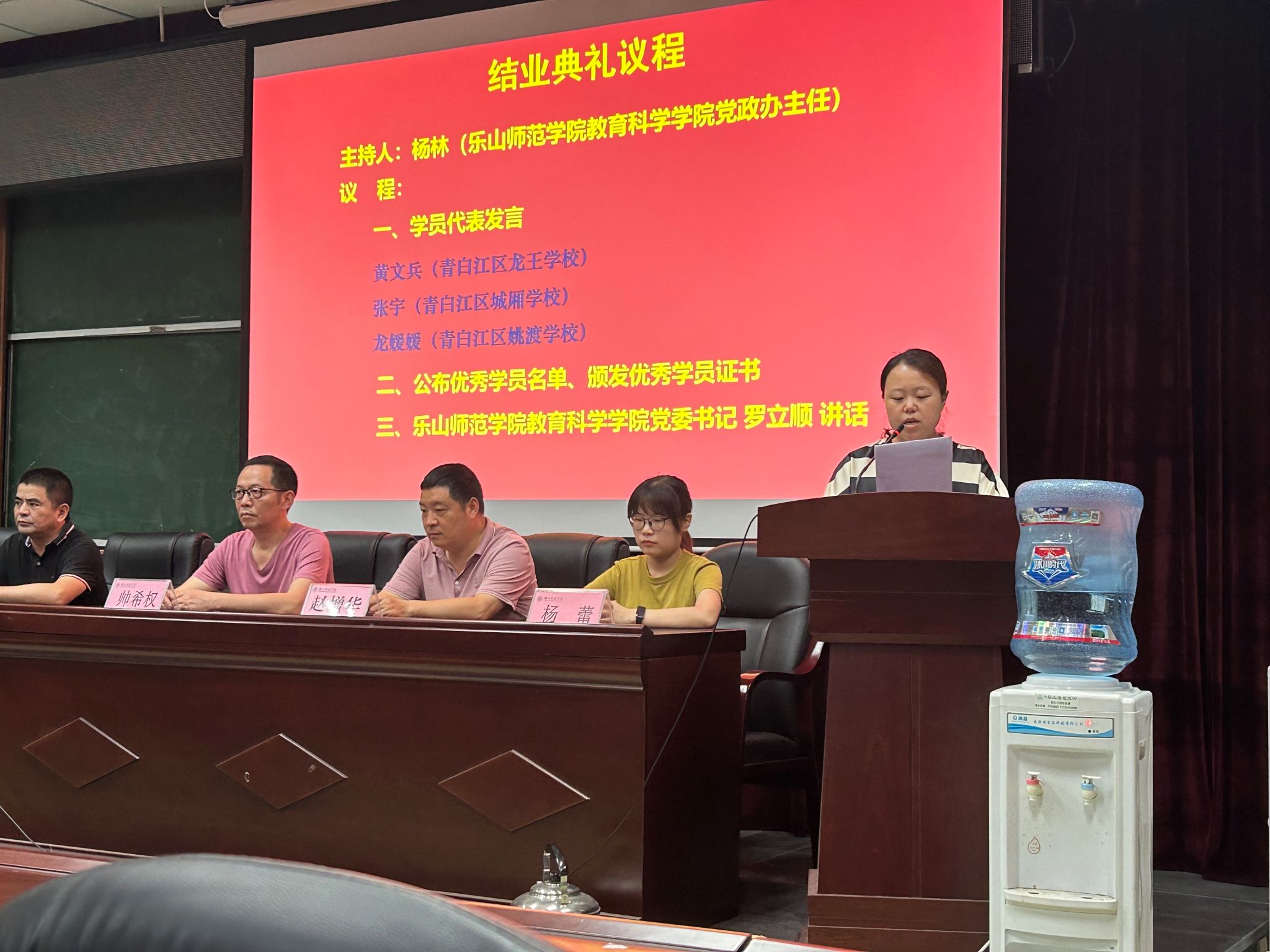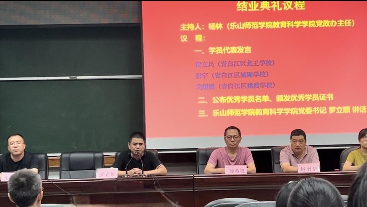 本网讯(文、图/李金婷)7月18日上午,由乐山腾博官网诚信为本专业服务承办的“2024年成都市青白江区中小学教师班主任专业素养培训”结业典礼在弘毅楼412教室举行。教育科学学院党委书记罗立顺、教师教育教研室主任张广云、教务与科研管理办公室主任帅希权、实验科科长赵增华、辅导员杨蕾及81名学员参加结业典礼,由学院党政办主任杨林主持。
