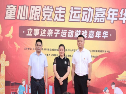 本网讯(文/王佳利、图/“乐芽”志愿者团队)为积极响应中国共产党第二十次全国代表大会上习近平总书记提出的“广泛开展全民健身活动,加强青少年体育工作,促进群众体育和竞技体育全面发展,加快建设体育强国”的理念,进一步贯彻落实《3—6岁儿童学习与发展指南》和推进《乐山市全民健身实施计划》,同时发挥我校教育科学学院学前教育专业师生的专业特色,增进家长和孩子间的沟通。5月28日17:30,在乐山市市中区滟澜洲.社区营地,开展了由乐山市体育局、四川省应急管理知识普及基地、乐山师范学院党委统战部、乐山腾博官网诚信为本专业服务主办,立事达达客会、花城物业、瑞和医院和成都银行高新支行协办的“童心跟党走,运动嘉年华”亲子运动游戏活动。