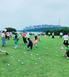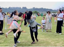 自由游戏:随着热身活动的结束,主持人宣布自由游戏环节正式开始,小朋友们就像撒欢的小野马,迫不及待地奔向50多个项目区域。在依山傍水的滟澜洲半岛上,大手牵小手,小手拉大手,融入绿意盎然的大自然。本次自由游戏时长为一个小时,各家庭拿着游戏卡进入区域体验,每个项目都有精彩的宣传和规则立牌。来自乐山师院教科学院学前教育专业的大三学生游戏组织者们向家长和小朋友讲解游戏卡使用方式、区域活动体验规则和注意事项,志愿者们分散到各个点位观察活动情况,以便提供专业的志愿服务,并记录活动过程中的精彩瞬间。
