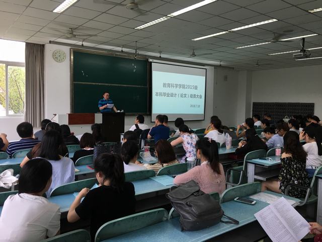 按照学校“关于做好2019届毕业设计(论文)工作的通知”要求,2018年7月10日下午,教育科学学院2019届本科毕业设计(论文)动员大会在行知楼101教室隆重召开,学院分管教学工作副院长廖华平主持并做工作动员。28位指导老师以及2019届小学教育和学前教育专业的本科生193人参加大会。