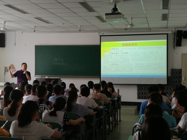 教科学院为加强师德、学风建设,营造良好的教书育人和学习环境, 9月3日,开学第一课老师们率先向学生作出师德承诺,党员老师们也以身作则做了党员承诺,各班学生们积极响应,也作出了学风承诺。