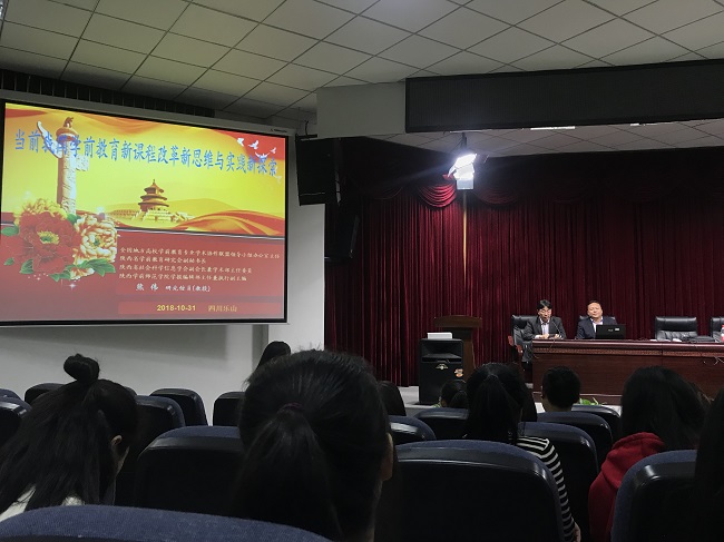 本网讯(文、图/吴茂羽)为丰富同学们对学前教育的理性认识,同时把经验性的总结内化,10月31日晚七点,教科学院邀请陕西学前师范学院学报编辑部主任兼执行副主编熊伟于特教大楼学术报告厅进行了关于《当前学前教育新课程改革新思维与实践新探索》的专题讲座,为我院学前教育教学思路注入了新活力。