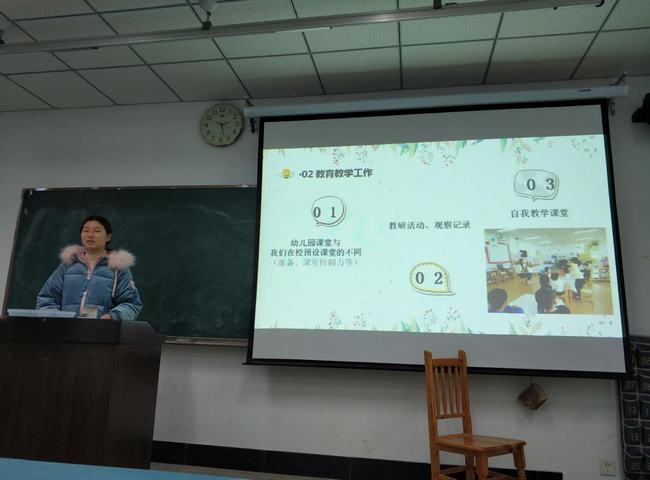 刘涛老师首先介绍了此次学前教育专业实习的基本情况,并对此次总结的意义和要求作了介绍。随后,各实习单位小组长代表各实习小组对实习期间的基本情况、收获与感想做了详细的汇报,并对实习工作提出了意见和建议。
