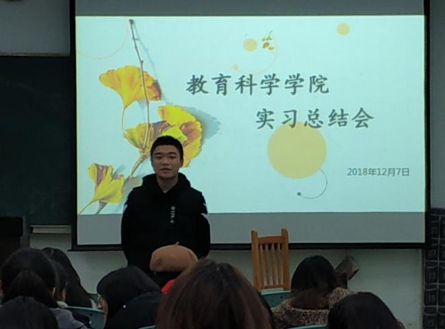 2018年12月7日,教科学院在行知楼211举行了教育科学学院学前教育专业实习总结会。教科学院副院长徐世鼎参加了此次总结会,总结会由带队指导教师刘涛主持,全体实习生参与总结。