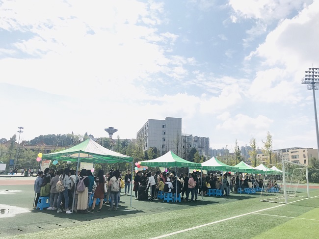 活动伊始,现场人头涌动,来自不同学院的同学们积极参加了本次活动,此次活动游戏丰富多样,简明有趣。在歌唱祖国游戏的游戏中,每一个同学都真挚地表达了对祖国母亲的热爱和赞扬之情;在红歌歌词接龙和名句传传传游戏中激发了同学们对祖国历史的学习热情;在家乡在哪里和省会省名简称快速答的游戏,同学们兴致高涨,在头脑风暴中比的是反应与速度,更是对祖国疆域与名称的了如指掌。活动开展如火如荼,红歌与笑声此起彼伏,氛围欢腾也恰好阳光明媚,与祖国70周年华诞相辉映。活动最后,每个参与者都收获满满,精美礼物净收囊中,留下了对祖国欣欣向荣与繁荣昌盛的美好祝愿。