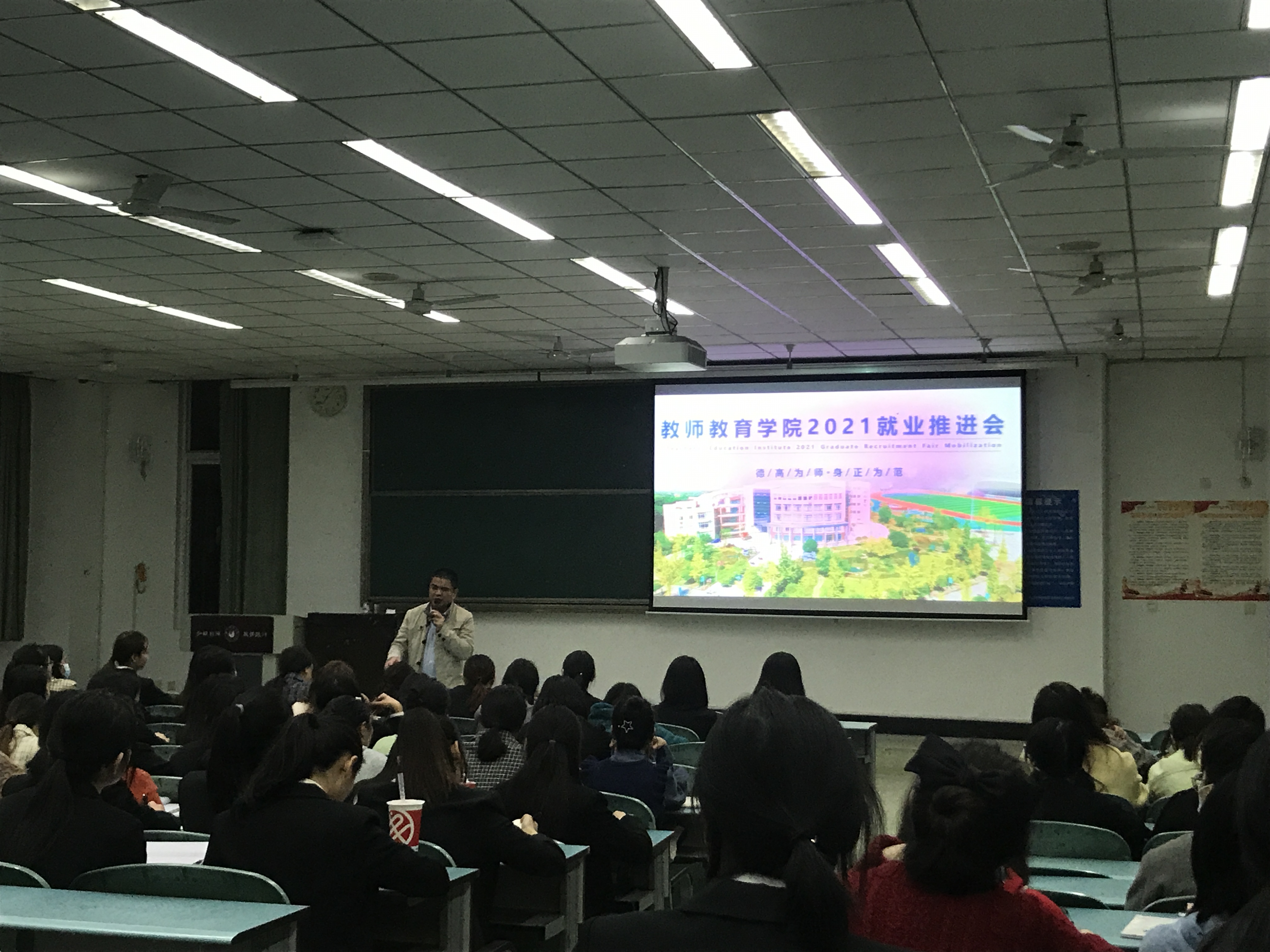 本网讯(图/李安钢、文/袁立方)11月19日晚上七点,为了让2021届教师教育学院毕业生明析今年特别严峻的就业形势,把握11月20日我校“毕业双选会”,教师教育学院在行知楼301举办了2021届毕业生就业促进会。出席会议教师教育学院党总支书记罗立顺老师、教师教育学院分团委书记、2017级辅导员袁立方老师。