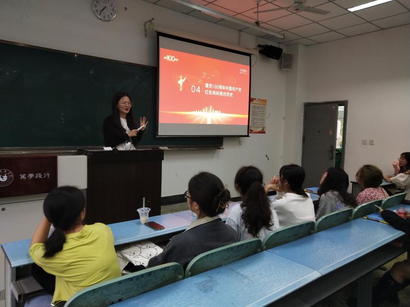 本网讯(文、图/陈颖)为落实新时代党的建设总要求,大力宣传党的光辉历程和丰功伟绩,教师教育学院于5月31日晚上19:30~20:00在行知楼101、102、103、104、105、106、107、109八个教室开展了“学党史 强信念 跟党走”的党史专题学习教育活动。2020级同学参加了此次教育活动,活动由学院学生党员主讲。
