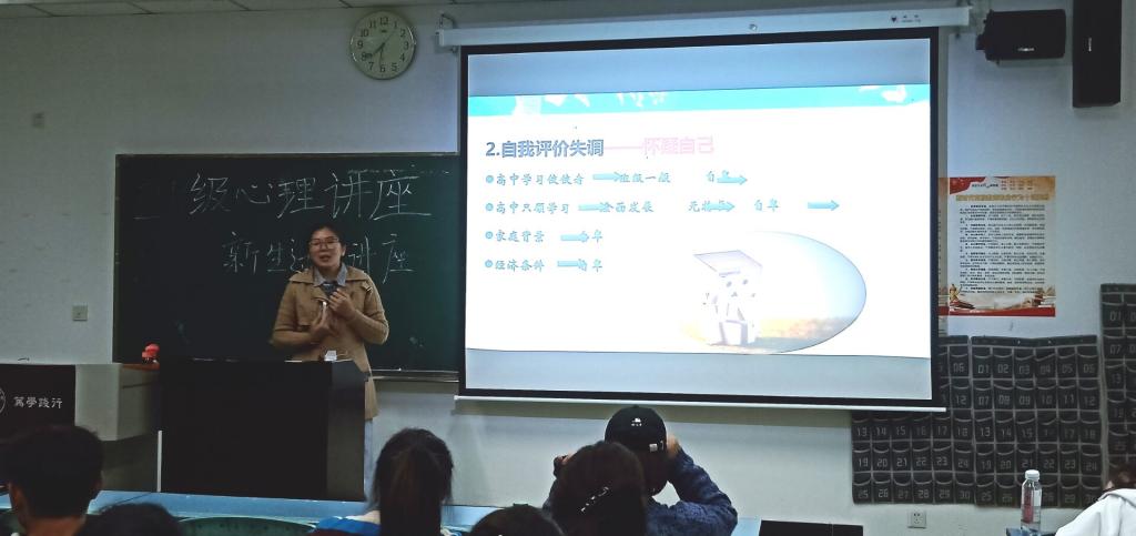 本网讯(文、图/蒋晓)为帮助21级新生提升心理素质,尽快适应大学生活,11月4日晚7:00,教师教育学院于行知楼415教室举办了21级心理健康暨新生适应性讲座。本次讲座由心理健康教育中心的邓雪薇老师主讲,21级小学教育专业和心理学专业同学聆听了本次讲座。