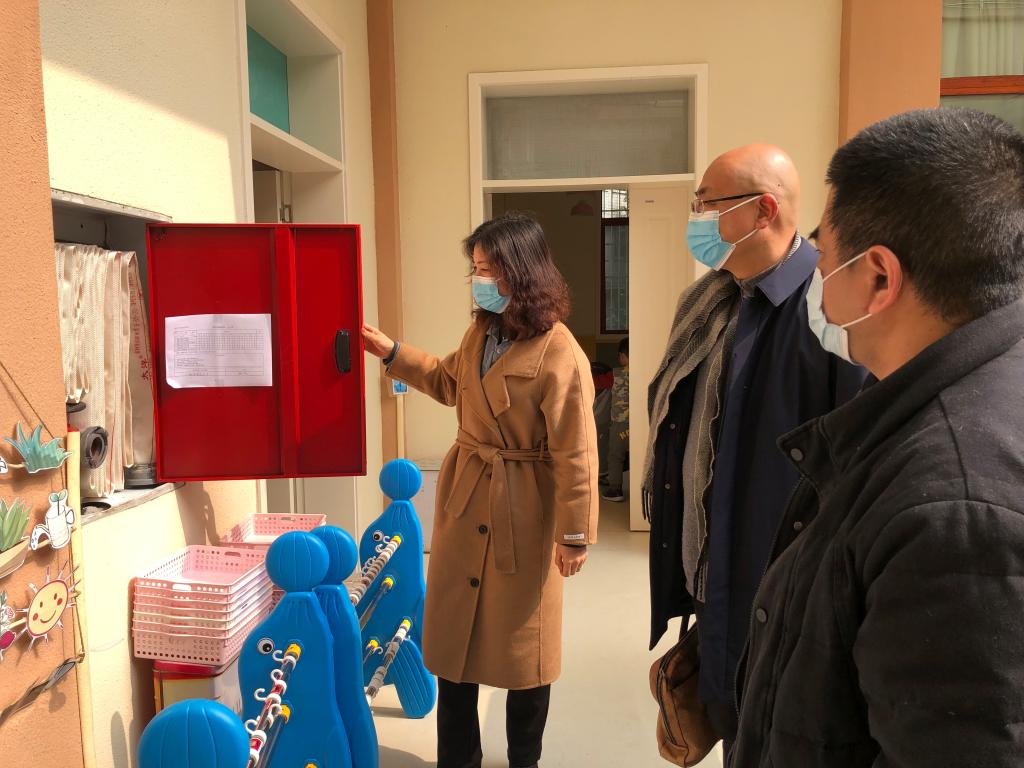 本网讯(文、图/傅妍妍)2月14日下午,乐山市市中区开学工作安全督导评估组到附属幼儿园进行开学安全工作检查,教育科学学院书记罗立顺、院长汪红烨、园长李莉陪同。根据省、市、区疫情防控指挥部有关会议和文件要求,结合当前新冠疫情防控工作形式,确保2022年春季学期开学工作安全顺利、平稳有序,附属幼儿园对照《2022年春季学期开学安全评估细则》进行一一自查,重点围绕校园新冠疫情防控工作、食堂食品及饮用水安全管理、消防安全、校园及周边安全隐患整治情况进行检查。