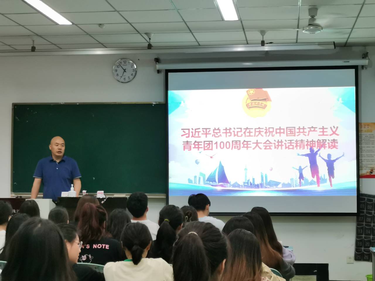 本网讯(文/张靖、图/李月梅、黄晓宇)5月27日晚,教育科学学院组织习近平总书记在庆祝中国共产主义青年团成立100周年大会上的重要讲话精神专题学习。教育科学学院党委副书记何晓军主讲,学院全体团学干部参加本次会议,会议由分团委书记李过主持。