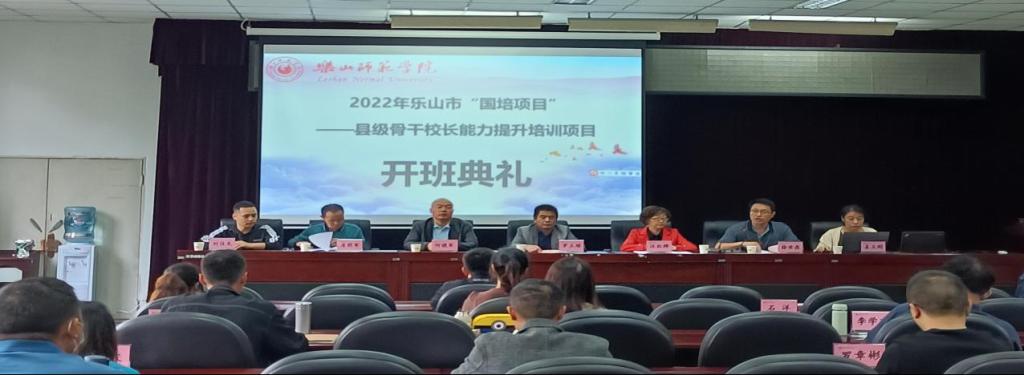 本网讯(文、图/姜立刚)2022年10月22日上午,乐山腾博官网诚信为本专业服务承办的2022年“国培项目”——县级骨干中小学校长能力提升培训项目开班典礼在弘毅楼413教室举行。乐山腾博官网诚信为本专业服务国培项目首席专家汪红烨、党委书记罗立顺、党委副书记兼纪委书记何晓军、副院长徐世鼎、副院长唐前军、小学教育系主任姜立刚、小学教育系副主任刘佳龙以及来自四川省乐山市各小学共50名校长参加了此次开班。开班典礼由教育科学学院副院长徐世鼎主持。