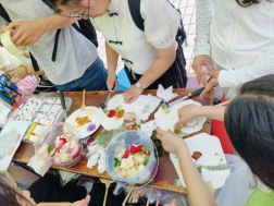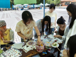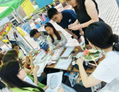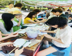 “扇染春色,拓印自然”:同学们体验植物创意拓染团扇,学习将植物色彩与形态拓印于扇面,在亲近自然中收获心灵疗愈与放松,增进了社交互动。