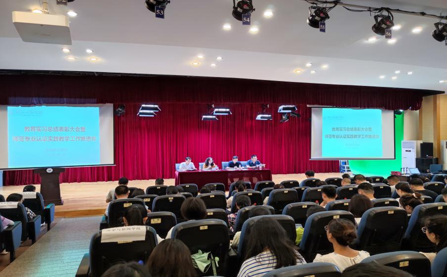 本网讯(文/吴瑞雪、图/李过)6月15日下午,2021届教育实习总结暨师范专业认证实践教学工作推进会在旷怡楼学术报告厅召开。副校长汪天飞、学生工作部部长黄显刚、教师教育学院院长汪红烨、教师教育学院副院长徐世鼎,教学院分管实习工作副院长、党总支副书记、学科教学论教师、实习带队教师、实习生代表,170余人参加了会议。会议由徐世鼎主持。