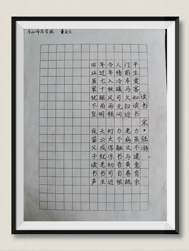 乐山师范学院的实习生们也积极踊跃的参与其中,在参加硬笔书法比赛共有55名实习教师中,乐师共有11位学子参加,占参与人数的20%,参中加粉笔字比赛共有24名实习教师中,乐师共有6位学子参加,占参与人数的25%。当然,乐师学子以出色的表现赢得了众多荣誉,如在两个比赛中荣获一等奖3个,占总共一等奖的60%,三等奖4个,成绩很突出。