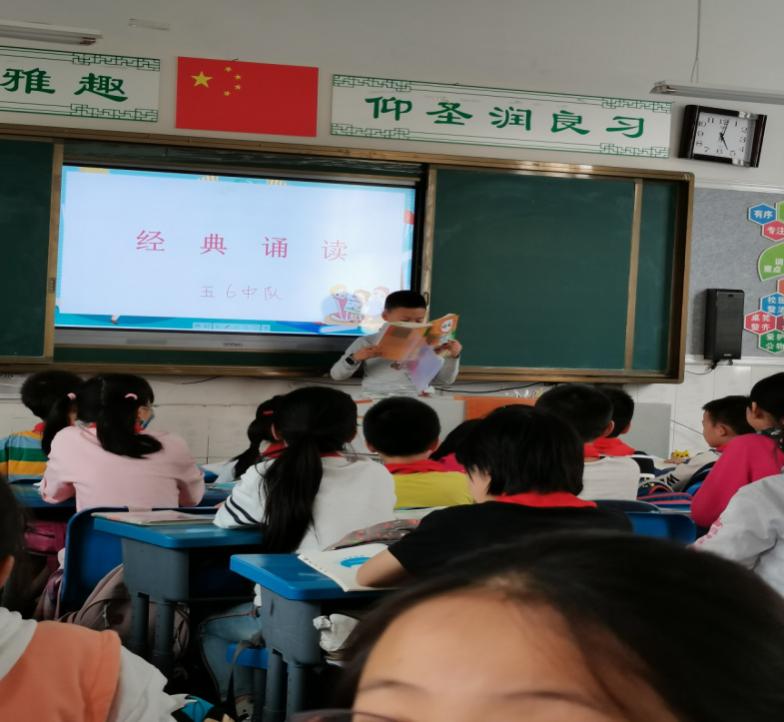 图为9月18日县街小学五年级六班的经典诵读主题活动