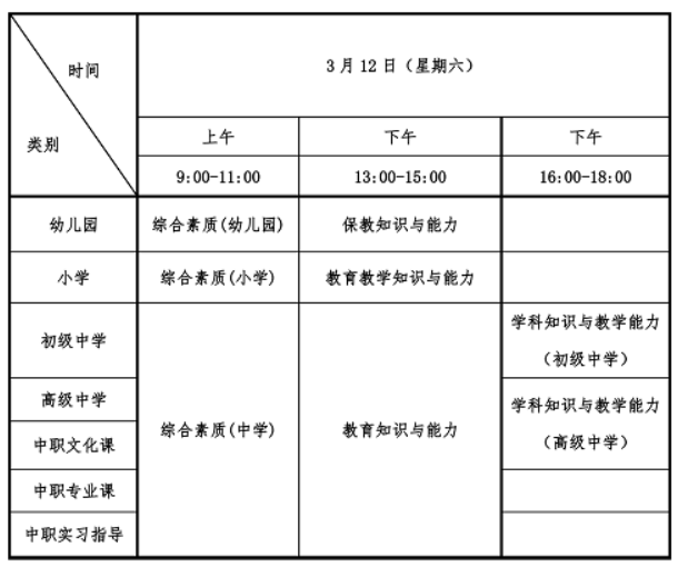所有科目考试均采用纸笔方式进行,具体安排如下: