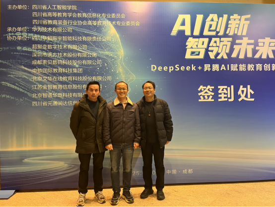 本网讯(文/图 吴永胜)2025年3月7日,四川民族地区乡村数字化教育研究中心主任唐前军、四川乡村教育发展研究中心主任吴永胜、四川民族地区乡村数字化教育研究中心办公室主任王建军、教育科学学院教育学系张晓玲、徐竹君一行,前往成都凯宾斯基酒店,参加四川省教育装备协会高等教育技术专业委员会、四川省高等教育学会教育信息化专业委员会、四川省人工智能学院等联合主办的“deepseek+晟腾 AI赋能教育创新研讨会”。