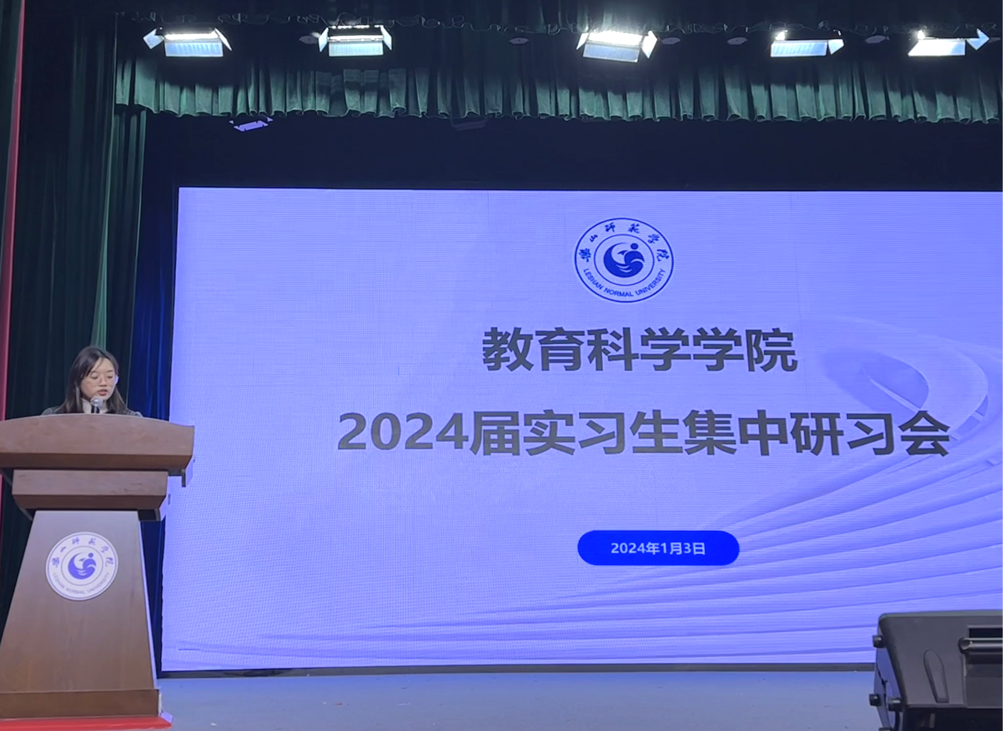 本网讯(文/徐竹君 图/黄丹、罗新宇)2024年1月3日上午,教育科学学院2024届集中教育研习会在实训楼多功能厅顺利举行。此次研习会旨在为全体实习生提供一个交流和学习的平台,进一步落实学校师范生教育实习规范,促进教育科学学院小学教育专业、学前教育专业和科学教育专业师范生完善专业知识结构,改进教学技能技巧,提升教育教学理念,增进教育教学智慧。