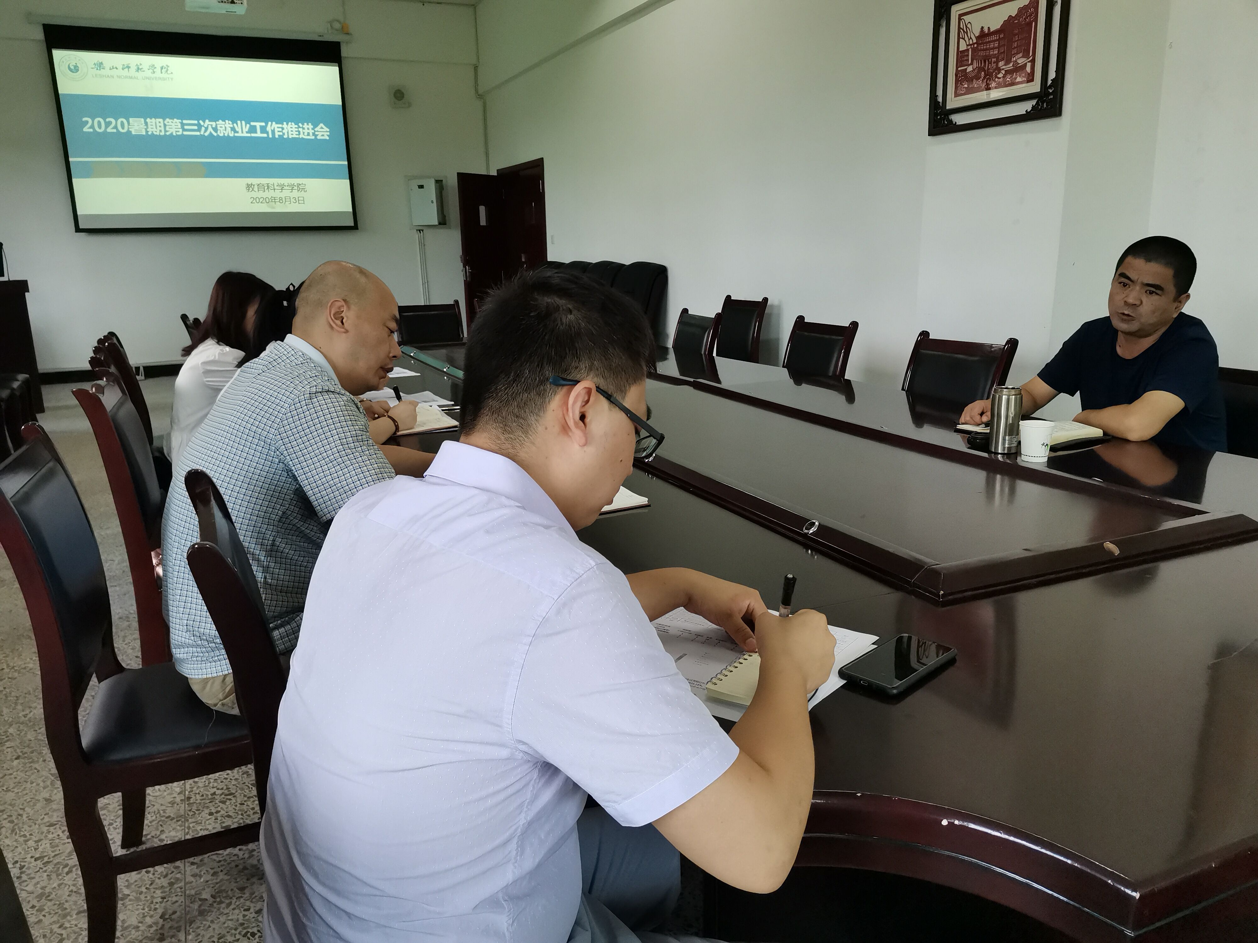 本网讯(图、文/翟雅媛)为了进一步推进毕业生就业工作,8月3日下午教师教育学院在学院会议室召开2020届毕业生第三次就业工作推进会。教师教育学院党总支书记罗立顺、党总支副书记何晓军、学生科长翟雅媛及全体辅导员参加了会议。会议由何晓军主持。