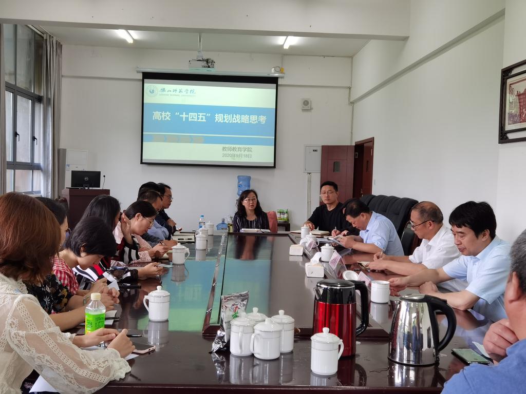 本网讯(图、文/袁英)9月18日上午,教师教育学院邀请到华中科技大学教育科学研究院院长、教授,博士生导师陈廷柱教授,座谈教师教育“十四五”规划。杜学元副校长、发展规划处罗明礼处长、教师教育学院全体领导班子以及20多位骨干教师参加了会议,会议由杜学元主持。
