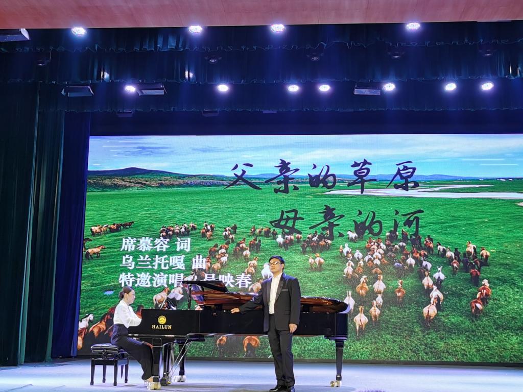 田苗和吴映春老师的声乐作品《越人歌》、《父亲的草原母亲的河》以悠扬的歌声琴声让现场观众感受到了《越人歌》的高远意境和《父亲的草原母亲的河》蒙古族儿女对草原深沉的爱。