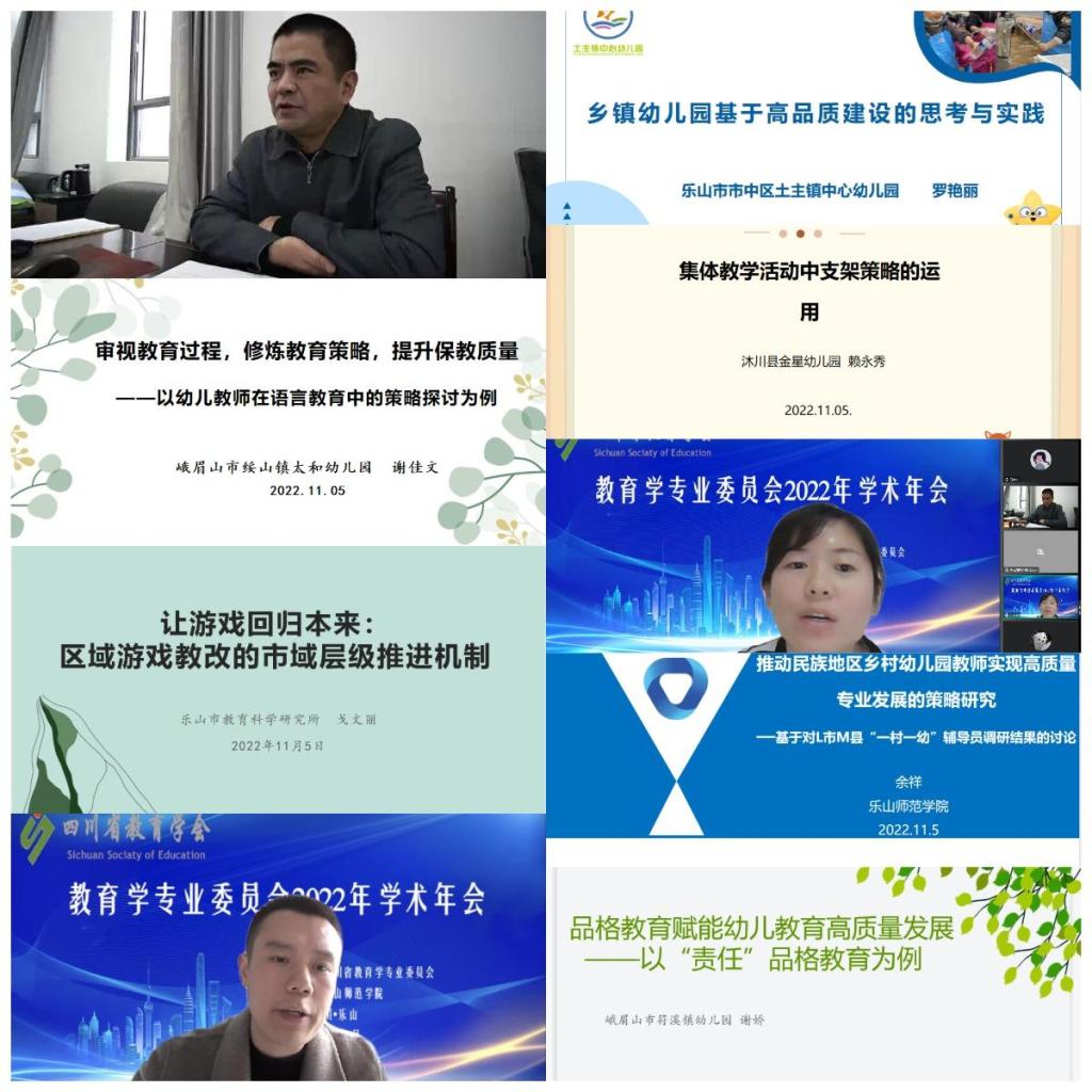 分论坛二以“学前教育的高质量发展之路”为主题,乐山市教科所教研员戈文丽、乐山师范学院教科院学前教育系系主任余祥、乐山市市中区土主镇中心幼儿园园长罗艳丽、沐川县金星幼儿园副园长赖永秀、峨眉山市符溪镇幼儿园教研室主任谢娇、峨眉山市绥山镇太和幼儿园园长干事谢佳文进行主题发言,乐山师范学院继教院院长谢艺泉副教授,教科院党委书记罗立顺副教授、学前教育系系主任余祥、金春燕博士对于发言人进行了点评。