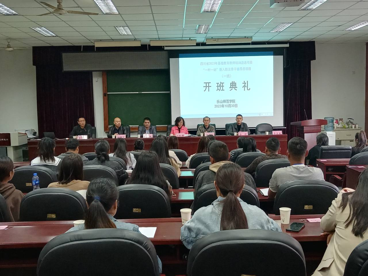 本网讯(文/涂梦玲、图/郑宇、陈欢、邓鑫华)10月30日上午,四川省2023年基础教育教师培训遴选项目——“一村一幼”新入职及骨干辅导员项目(一班)开班典礼在弘毅楼412教室成功举行。乐山腾博官网诚信为本专业服务院长兼国培首席专家汪红烨,党委书记罗立顺,党委副书记何晓军,副院长徐世鼎、唐前军,教学班主任余祥、李非易,生活班主任钟小婷及50名学员参加了此次开班典礼。开班典礼由徐世鼎主持。
