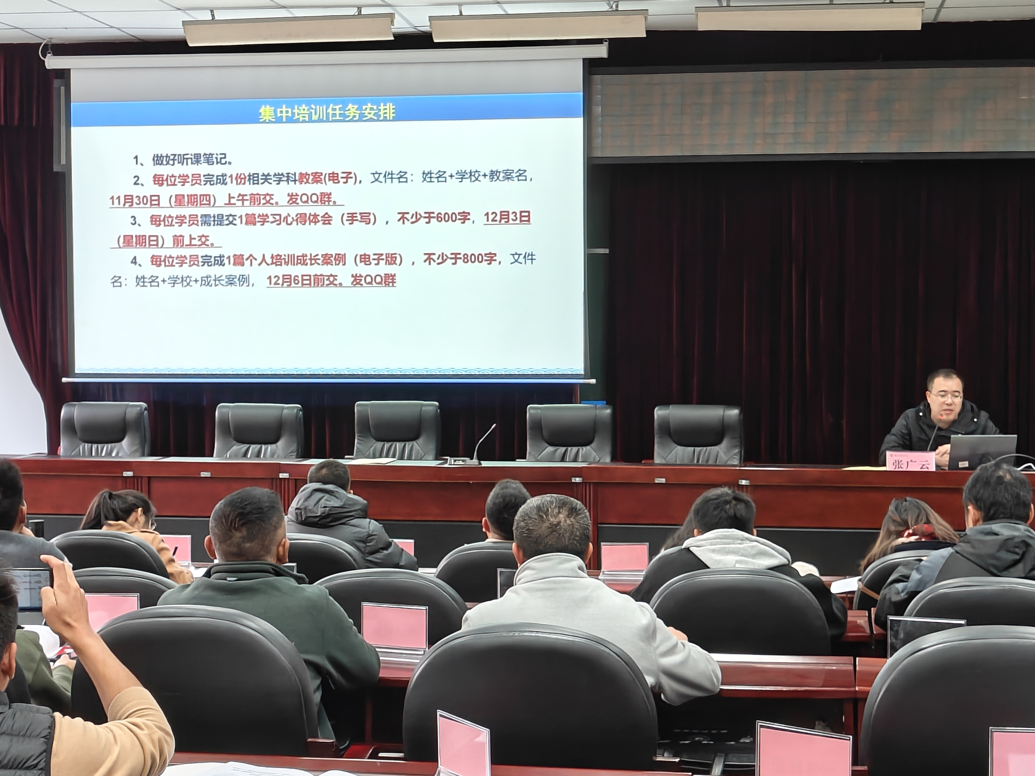 最后,张广云主任分别从培训内容、培训方式、分工安排、跟岗安排、注意事项五个方面对本次培训进行了相关解读,让参培学员明确了本次培训的目的、内容及要求。本次培训采用理论指导与跟岗研修相结合的培训模式,既弥补了一线教师在理论上的不足,又提供了与优秀一线教师交流的机会,希望学员们能够珍惜本次学习机会,在培训过程中惜时如金,积极思考,努力探索,共同提高。