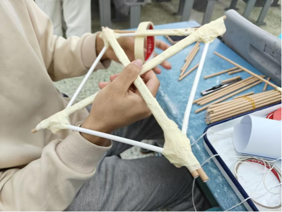 参加这次科技活动的是2022级和2023级的科学教育的同学。他们分成十三个组。小组合作去制作塔台。