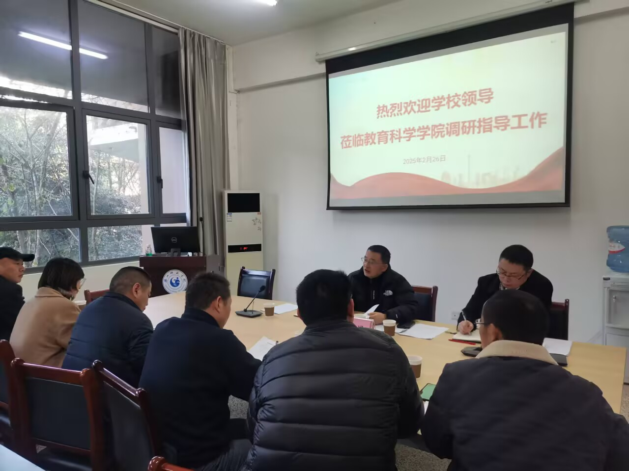 在教育科学学院,教育科学学院党委书记罗立顺、院长佘万斌分别汇报了学院在硕士点建设、学科建设、专业发展、人才培养等方面的现状和未来发展思路、规划。